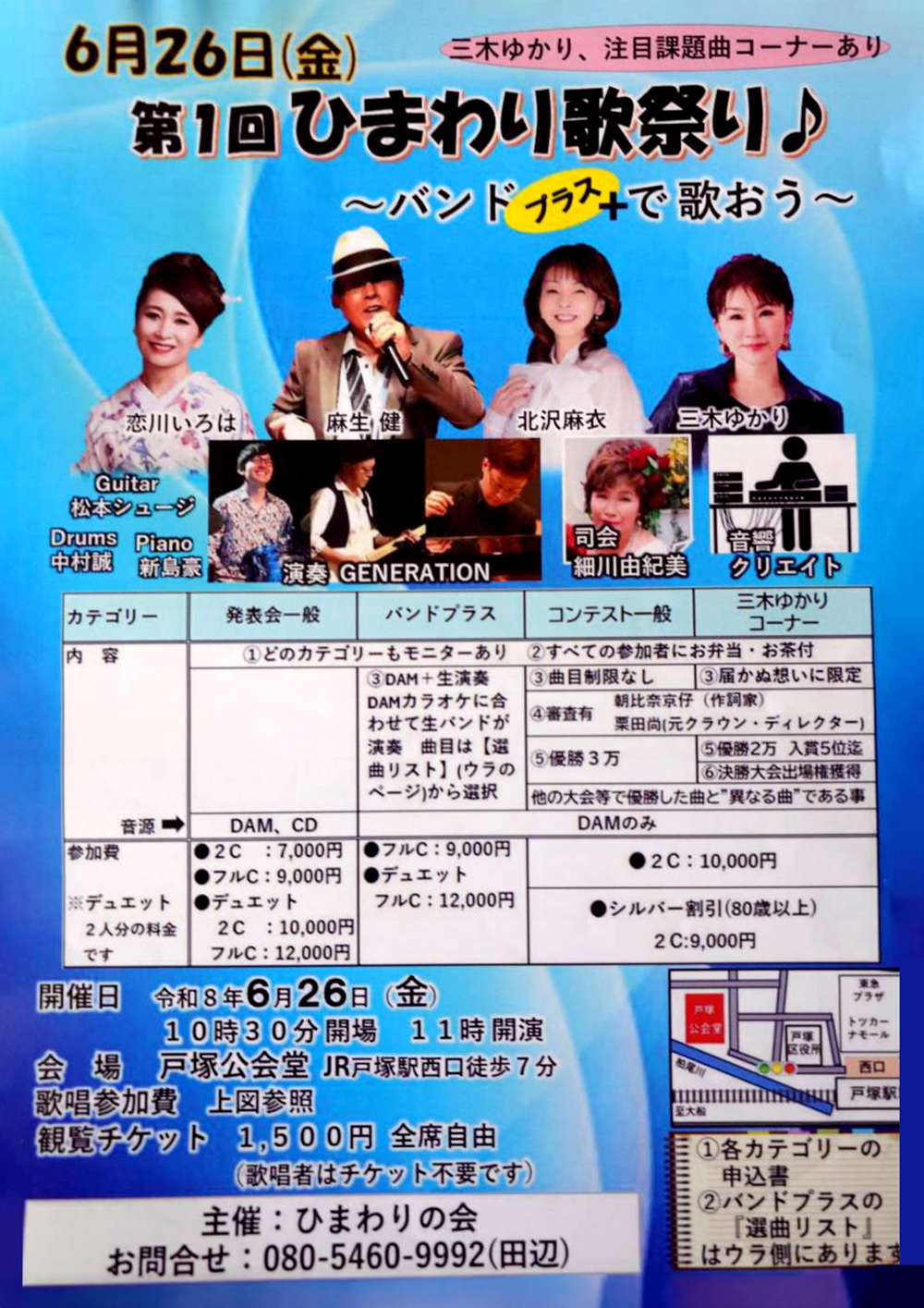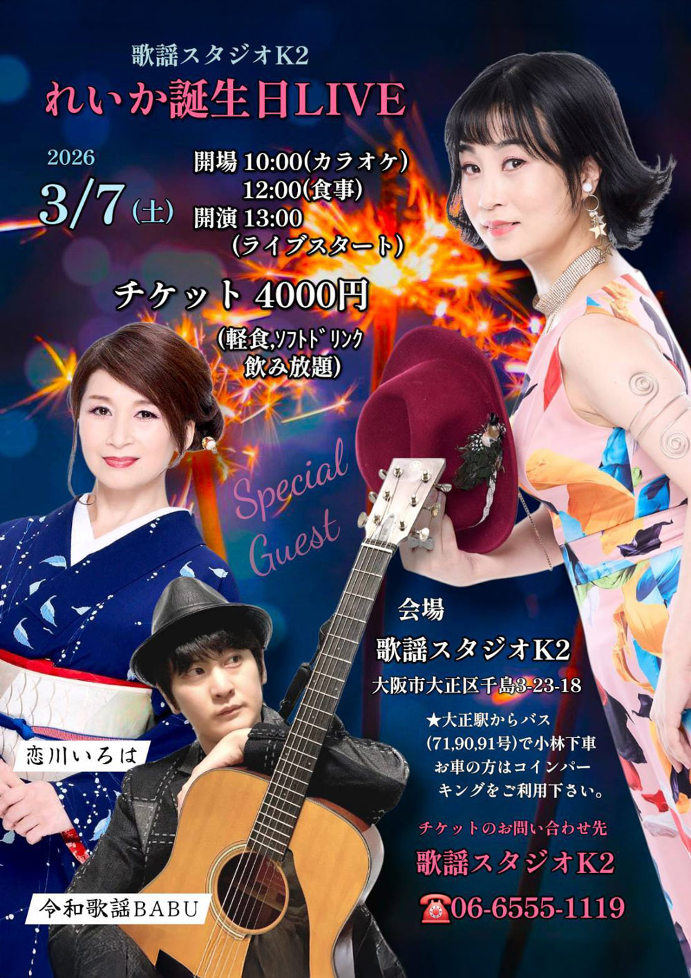 | 問合せ | 06-6555-1119(歌謡スタジオK2) |
